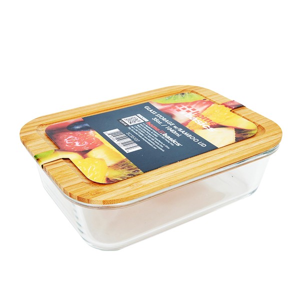 PREMIUS Home Basics Glass Storage Container With Bamboo Lid Rect, Clear, 21.5 Ounces