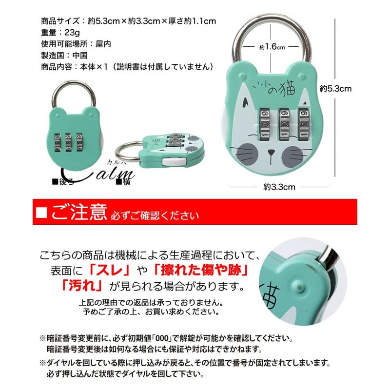prendre PR-LOCK10-NV 3 Digit Cat Dial-Type Indoor Small PIN Code Anti-Theft Cute Lock Safe Cat Black Cat White Cat (Navy)