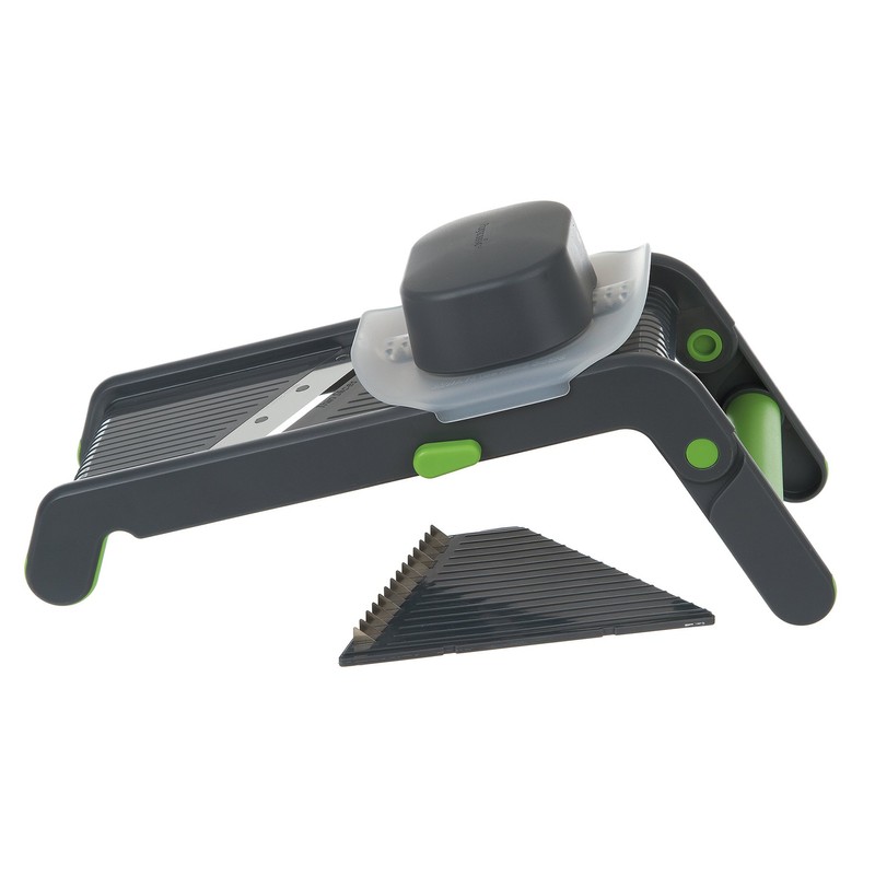 - SPACE SAVING: The sleek design of the Prepworks by Progressive Folding Mandolin Slicer features three slicing thicknesses and a french fry cut