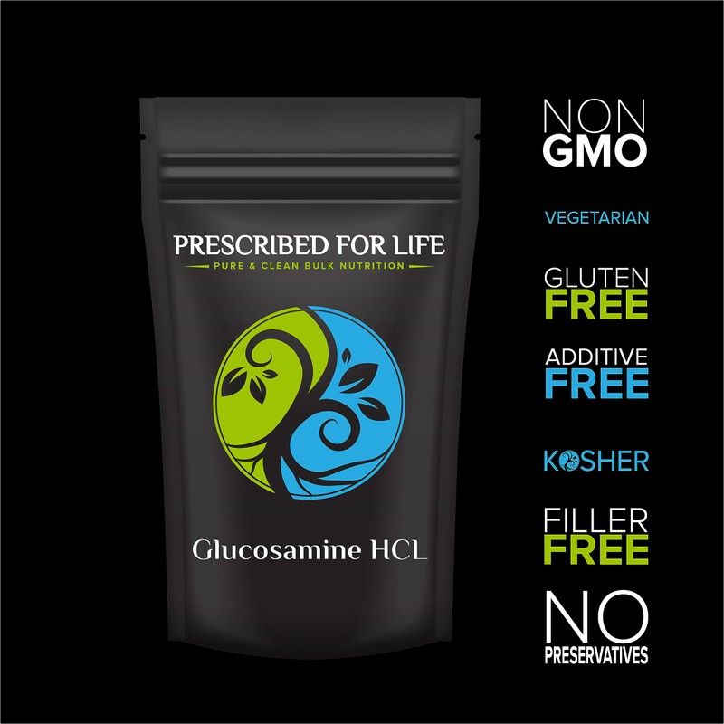 - PREMIUM BULK NUTRITION: Prescribed for Life offer sizes from 56 g to 25 kg (55 lbs) for your bulk Glucosamine needs. Glucosamine Powder is packaged in the USA in accordance with GMP guidelines.