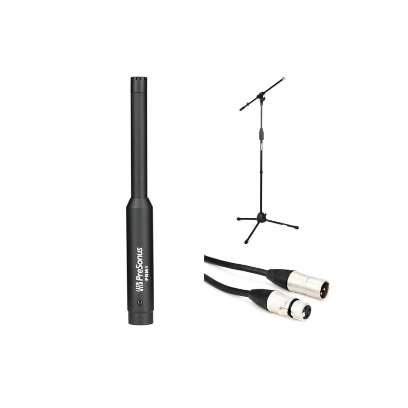 PreSonus PRM1 Omnidirectional Condenser Measurement Microphone with Stand, Cable, and Carrying Case - Professional Audio Mic for Studio, Sound Calibration, and Acoustic Testing - Durable and Reliable
