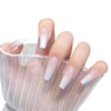 Press on Nails Ballerina Long Nails for Sticking with Nail Glue, Artificial Nails with Design, False Nails, Shiny Artificial Nails, Pack of 24, Glossy French Fake Nails for Women and Girls