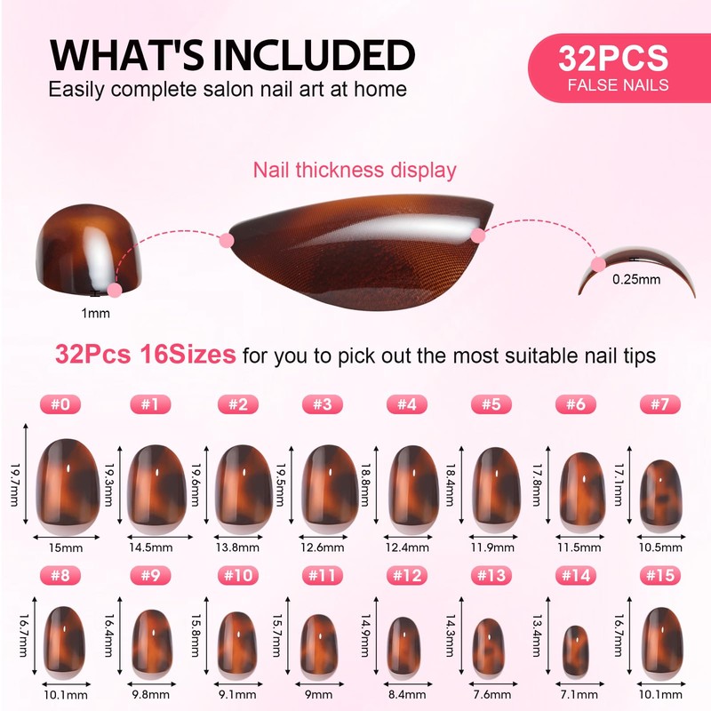 - Include(32 Nails in 16 Sizes) : Various nail sizes ensure a totally custom fit, each set comes complete with a storage box, nail glue, adhesive tabs, double-sided nail file, cuticle stick, and prep pad.