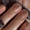 Press On Nails, Gold Foil Glitter Designed in Glue on Nails, Golden Line Fake Nails, Short Square Almond Ballet Shape for Stick On Nails on 24PCS (Short Gold Glitter)