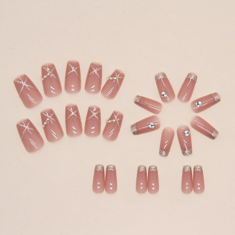 - Reusable 24 pieces press on nails medium length are durable to last for 2 weeks. Package inclues:24 Pcs Press on Nails, 1 Nail Glue, 1 Glue Sticker, 1 Wooden Stick and 1 Mini Nail File