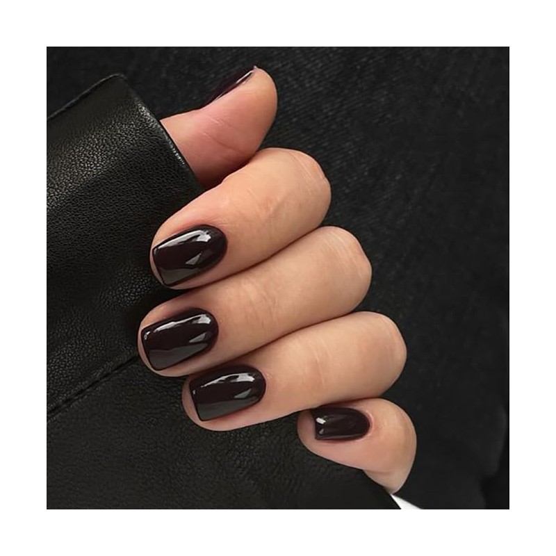 Press On Nails Solid Dark Color Fake Nails, Short Square Medium Shape, Stick on Nails,Glue on Nails Short Coffin False Nails on 24PCS (Black)