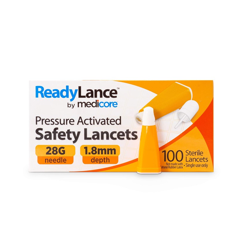 ReadyLance, Pressure Activated Safety Lancets, 100 Lancets, 28Gx1.8MM, Orange