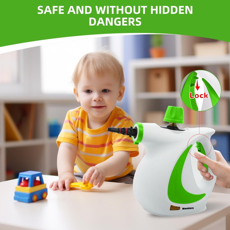 - Use and safety: Steam cleaner safety is a vital theme, keep away from skin and eyes when using, avoid high temperature burns, this product is equipped with a child safety lock, effectively prevent children from contacting the operation and causing danger, be sure to unplug the power plug when filling the water tank, hold the plug itself when unplugging, the product cover is locked and cannot be opened when in use, after use, let the machine cool down before storing.