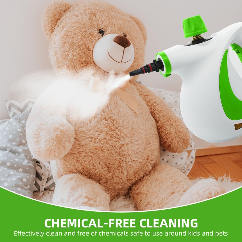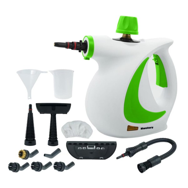 Pressurized Handheld Portable Steam Cleaner, 1050W High Pressure Steam Machine with 12 Tools and Safety Lock for Household Cleaning, Tile, Grout, Kitchen, Windows, Car (Green)