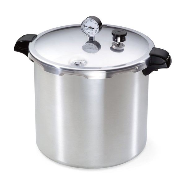 Pressure canning is the only method recommended safe by the U.S. Department of Agriculture for low-acid foods. Doubles as a boiling water canner for preserving fruits, jams, jellies, pickles and salsa in pint and half pint jars. Also handy as a large capacity pressure cooker. Constructed of warp- resistant, heavy-gauge aluminum for fast, even heating. Works on regular and smooth-top ranges. Deluxe pressure dial gauge registers the complete range of processing pressures. This precise measurement is especially important at higher altitudes. Air vent/cover lock allows pressure to build up only when the cover is closed properly and prevents the cover from opening until pressure is safely reduced. 23-Quart liquid capacity (21.8 liters).