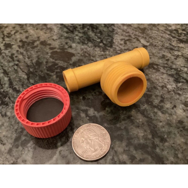 24BG401 up for sale is a nice vintage plastic yellow and red colored coolant system flush out Tee T this has a length of 2.634 long and has a stem diameter on the T part that would fit a 5/8 hose with a bump to hold the hose one after clamping , the top cap measures 1 1/4 diameter x 5/8 tall ,the height from the bottom of the T to the top of the cap is 1 7/8 inch , nice vintage part to make your project complete , see our store we try to add new items like this weekly , thank you rwk