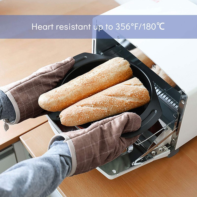 - NON-SLIP:Oven Mitt are constructed of durable cotton. The flexible cotton helps you hold tight to pans, pots and baking sheets without hindering your natural grip,the soft polyester-cotton lining adds an extra protection & comfort layer
