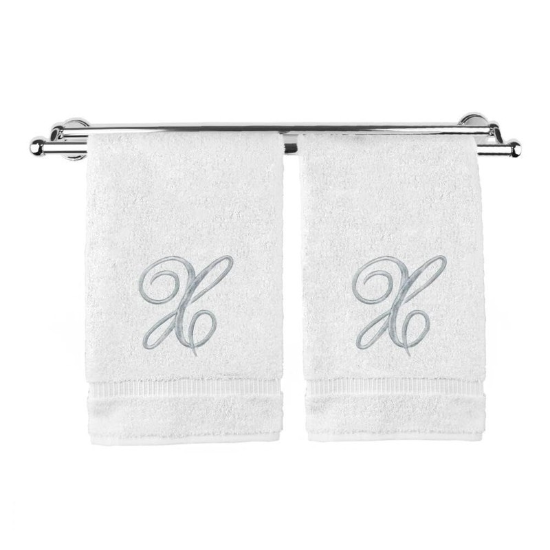 - Pretty Monogrammed White Turkish Cotton Bath Hand Towel Set of 2 with Embroidered Silver Script X | 16"x 30" Soft Terry Finish Extra Absorbent Quick Dry Plush Luxury Bathroom Kitchen Spa Bath Towel