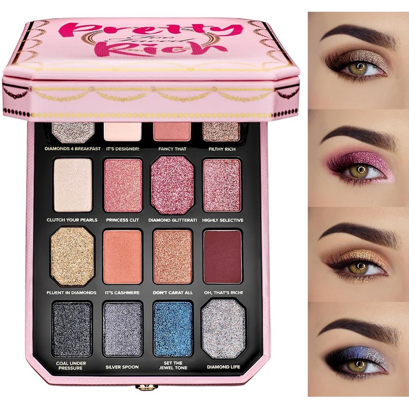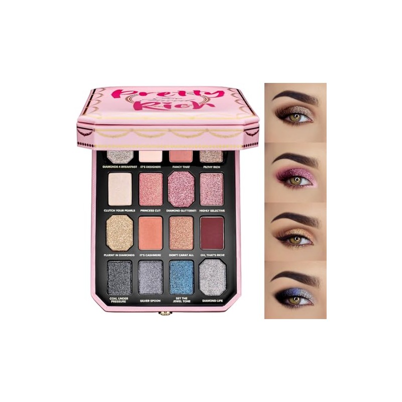 - This captivating collection of 16 ultra-luxe shades of vivid glitters, creamy mattes, opulent shimmers and precious pearls can be layered in infinite ways to mimic the multifaceted beauty of real diamonds. The four diamond-shaped pressed gel-glitter shadows allow for self-adhesion to minimize glitter fallout, so your eyes stay dazzling with breathtaking intensity.