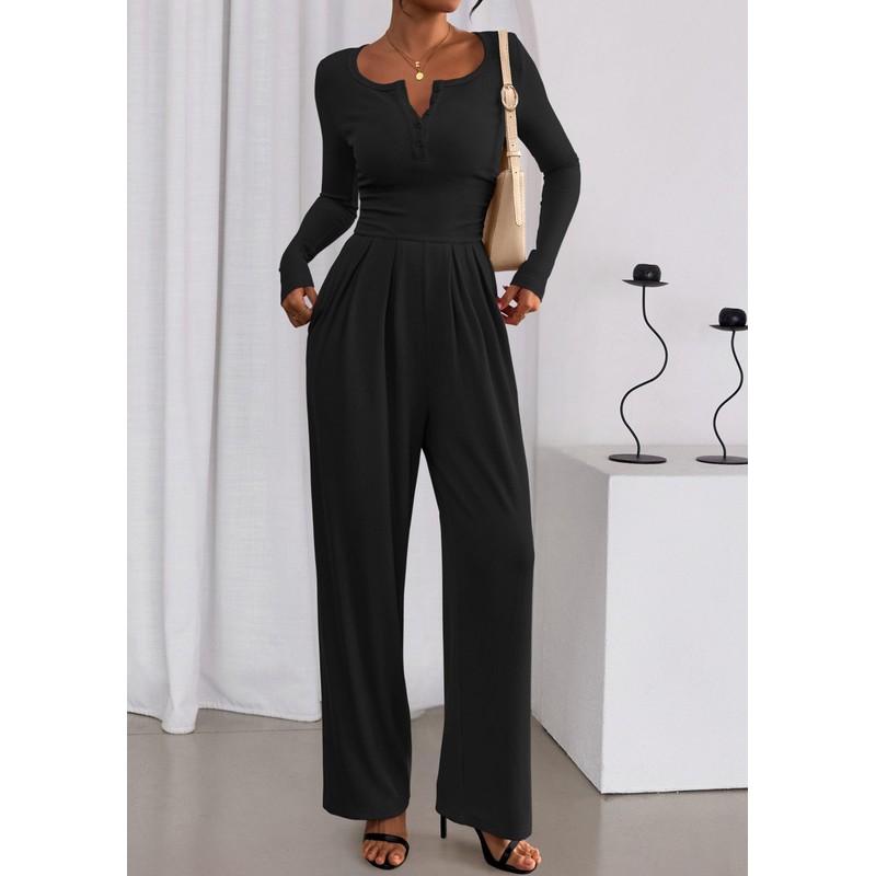 - Stylish Design: Womens pants romper with wide leg cut flatters various figure while henley neck gives versatile style. Stay cozy and stylish in long sleeve jumpsuits for women, featuring comfortable fabric and a relaxed yet polished silhouette