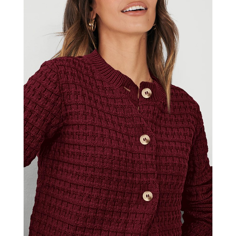 PRETTYGARDEN Women's Knit Cardigan Sweaters Casual Long Sleeve Open Front Button Down Trendy Jackets Outerwear (Wine Red,Large)