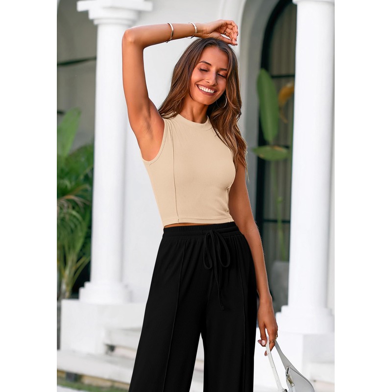 2pc Summer Outfits/Crop Top and Pants Set/Wide Leg Sweatpants/High Waisted Palazzo Pants/Drawstring Sweatpants/Knit Sleeveless Tank Tops/Fitted Tee Shirt/Pullover Set/Long Pants with Pockets