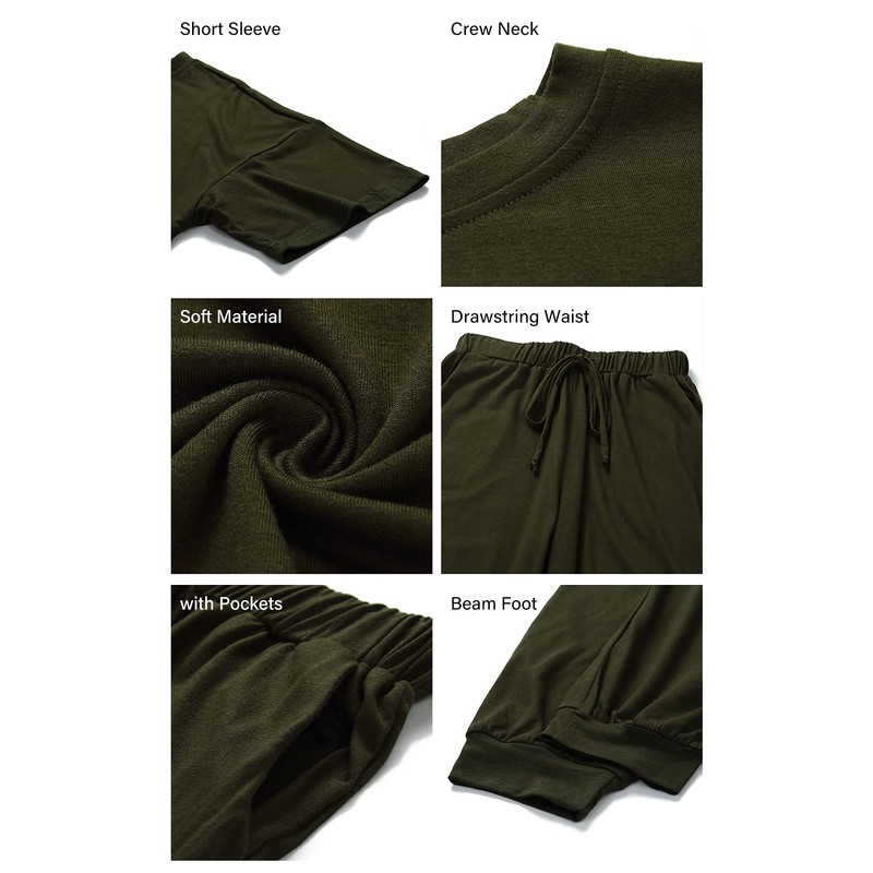 - BASIC AND CASUAL- This Womens Two Piece Outfits Comes With a Short Sleeve Crewneck Pullover Tops And a Long Drawstring Pants, Both Of Them Are Designed In Classic Solid Color And Simple Style, And You Can Wear Them Separately And Match Different Tops Or Pants To Complete More Looks. With Its Relaxed Silhouette And Neutral Color, This Simple Two Piece Set Can Be Worn With Nearly Any Outfit