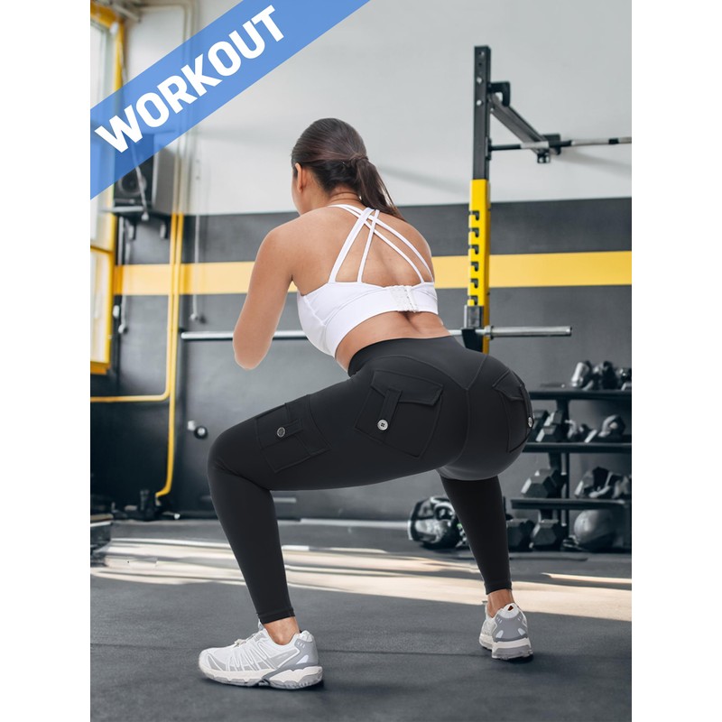 - 【High-Waisted & 4 Flap Pockets】 The high-waisted design provides tummy control and compression for a smooth, secure fit, showing off your figure to perfection. These cargo leggings have 2 side pockets and 2 back pockets, making it easy to carry your phone, keys, and other essentials