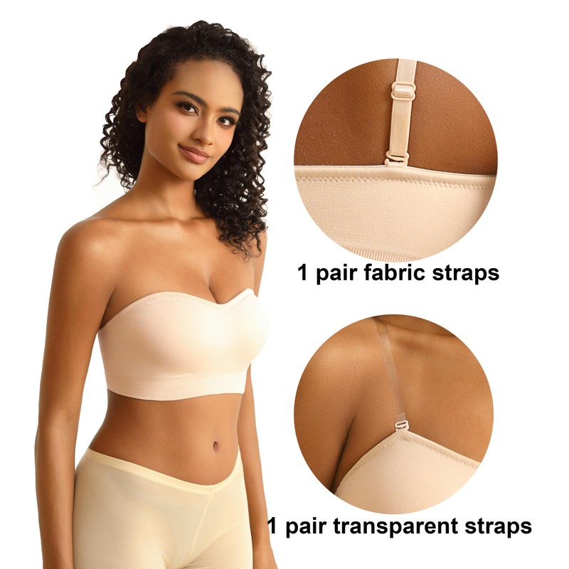 - 2 pairs of multi-way straps: the strapless bra comes with 1 pair of fabric straps and 1 pair of clear straps.You can wear our bandeau bra in multi-ways, such as: strapless bra,everyday bra,cross back bra and invisible bra with clear straps.