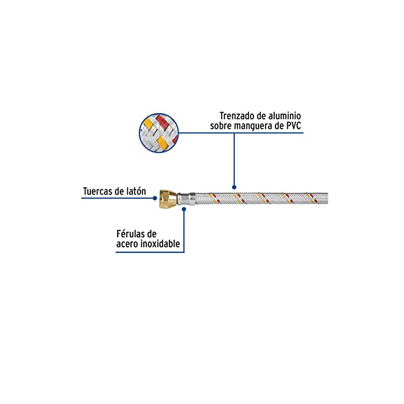 - Trenzado de aluminio sobre manguera de hule NBR para mayor durabilidad y resistencia