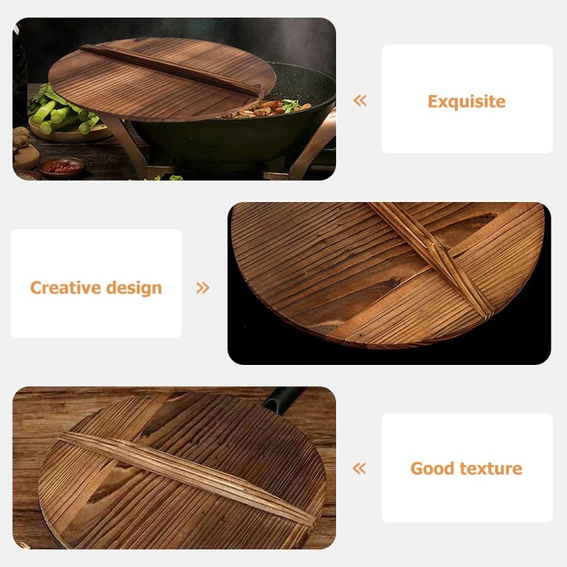 - Wood wok lid: round wok pan cover with sufficient thickness prevents spattering and spills, also keeping food warm for.
