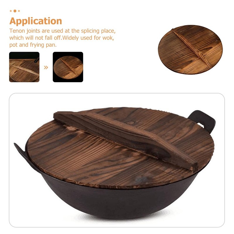 14 12 inch It can be used repeatedly.skillet Easy to clean.fry pan Widely used for wok, pot and frying pan.metal cooking utensils This product can be given as a great for your friends and families.replacement They will be very happy.Cast Iron Wok Pot Lid This item is a wooden wok cover, which is made of premium and food-grade material for durable use