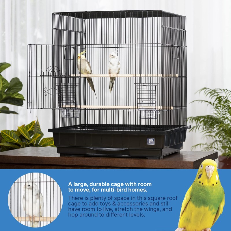 Prevue Pet Products Square Top Parakeet Cage, Black 25.0" L x 21.0" W x 29.5" H