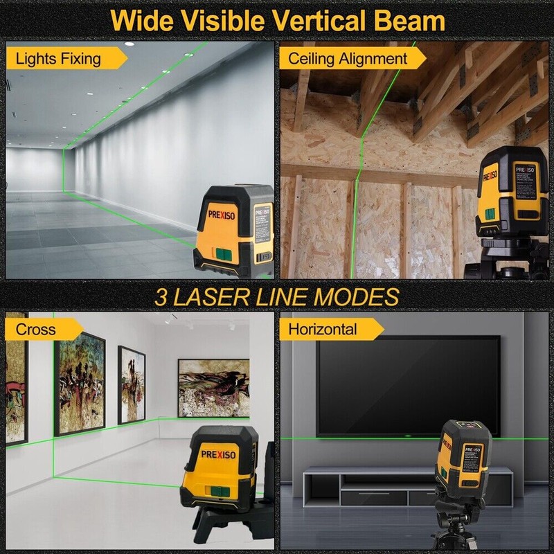 - Dual Modules & 3 Projecting Modes: PREXISO line laser has two laser sources. Laser level of professional laser head is more accurate. Projects bright horizontal, vertical & cross 3 modes ​lines onto flat surfaces and levels, stable than other common equipment