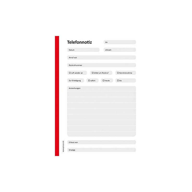 PRICARO 10 x A6 Unpunched Telephone Notepad Red