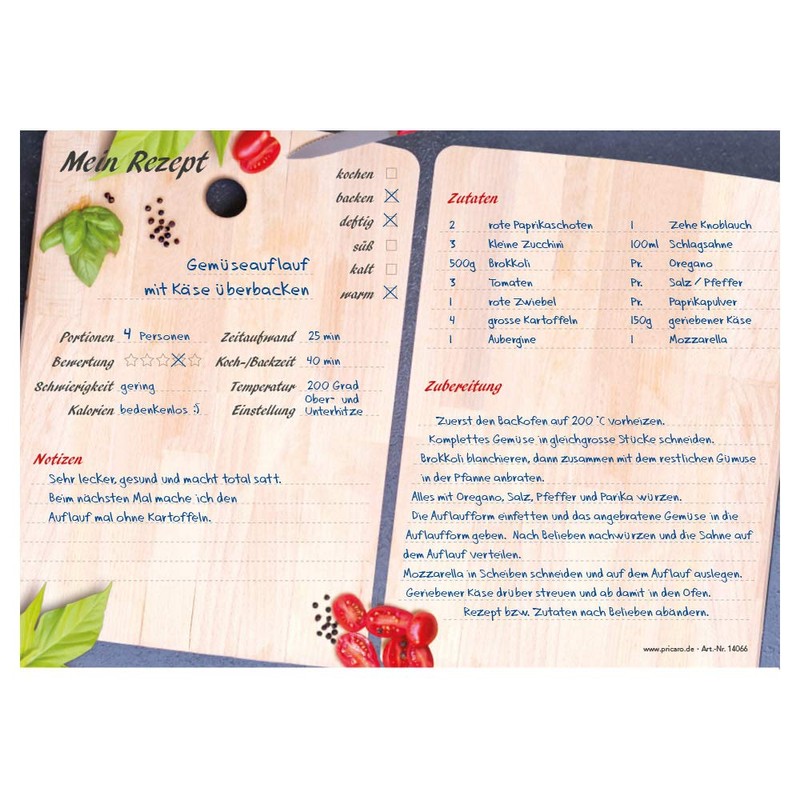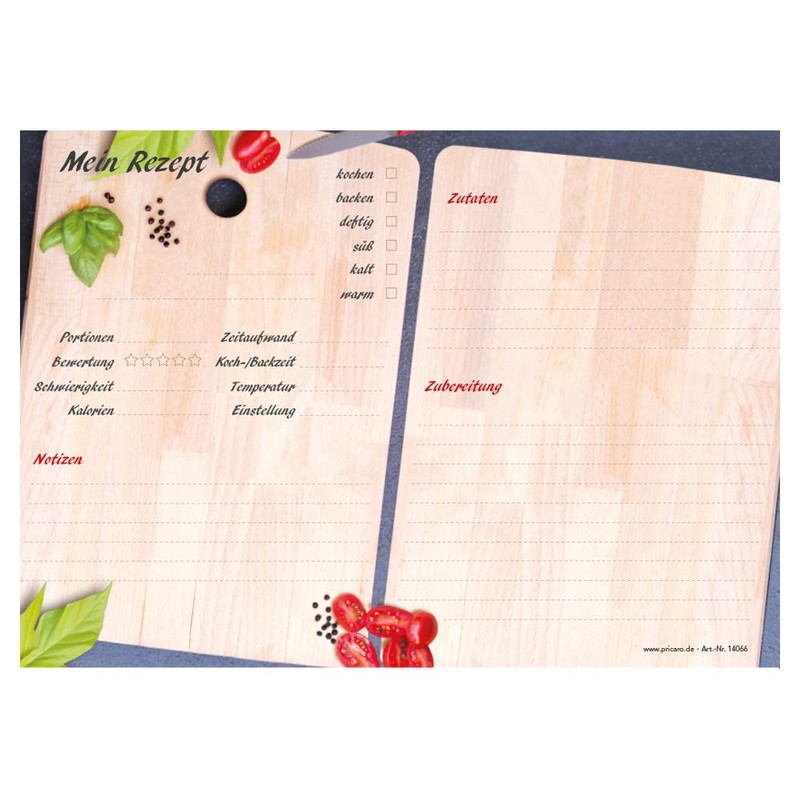 Unimaginative was yesterday. Makes baking and cooking fun. In our range you will find different recipe block designs that meet every taste. The clearly designed recipe blocks help you to ensure that your favourite recipe is no longer forgotten. The structured division not only simplifies preparation, but is also the ace in the sleeve when you are spontaneous visiting or you want to prepare something special for yourself and the family. Combine the recipe pad with our shopping lists as well as meal/weekly planners.