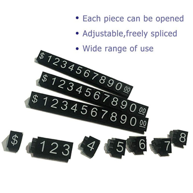Price Tag Cube Adjustable Assembly Number Angled Pricing Counter Display Stand Label Sale Price 14 Sets (Black, Large)