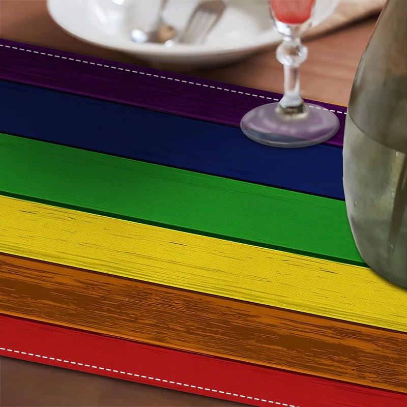 Pride Rainbow Modern Art Burlap Table Runners for Table Dresser Runner Farmhouse Style for Dinner Party Holidays Home Decoration