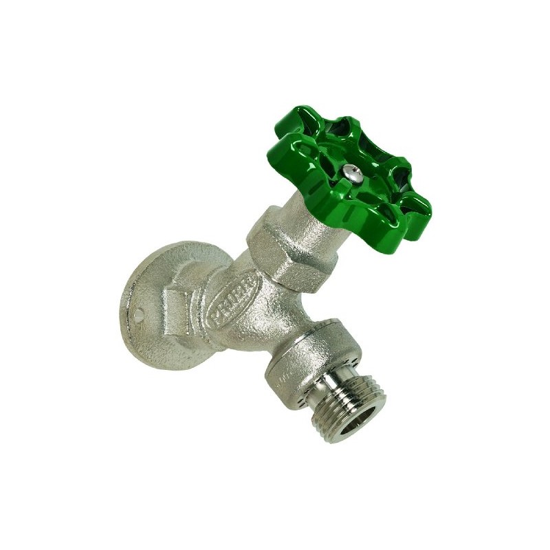 - 1/2" Fpt Anti-Siphon Angle Sill Faucet, Satin Nickel Plated With Green Handle And Operating Key