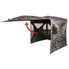 - 70" height;5'6" x 5'6" foot print;82" hub to hub shooting width;23 lb in carry bag with straps.