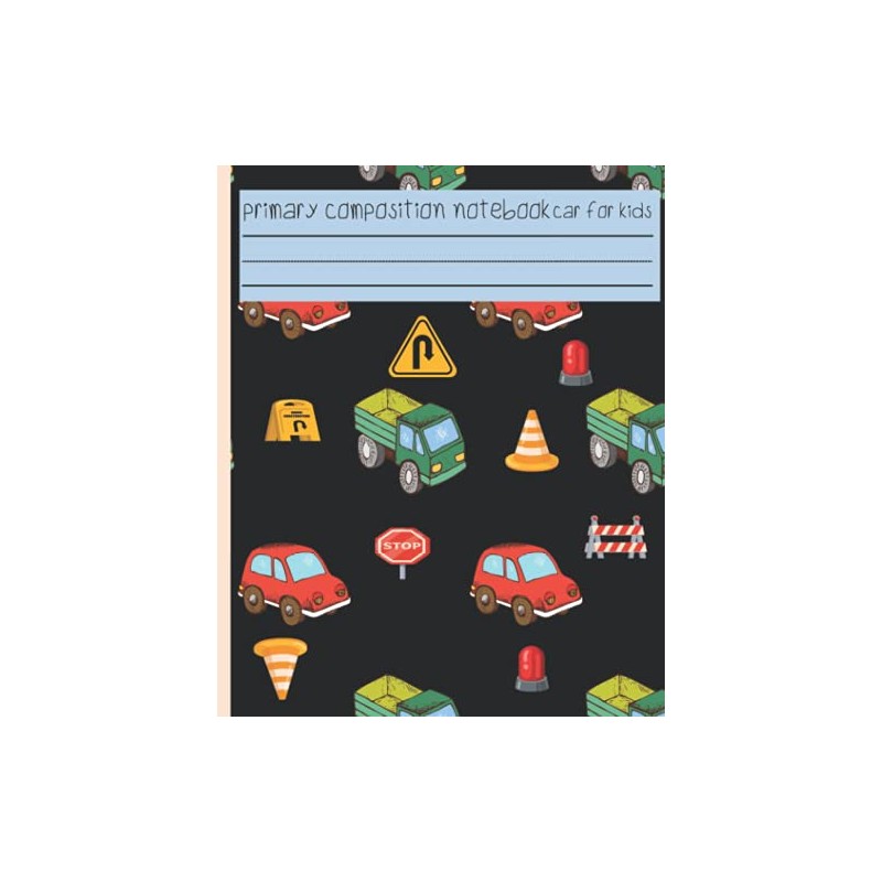 primary composition notebook car for kids.: primary composition notebook with picture space on top half and Primary and Kindergarten Ruled Lines on bottom half of the page, preschool dotted midline and picture space notebook, kids car lovers .
