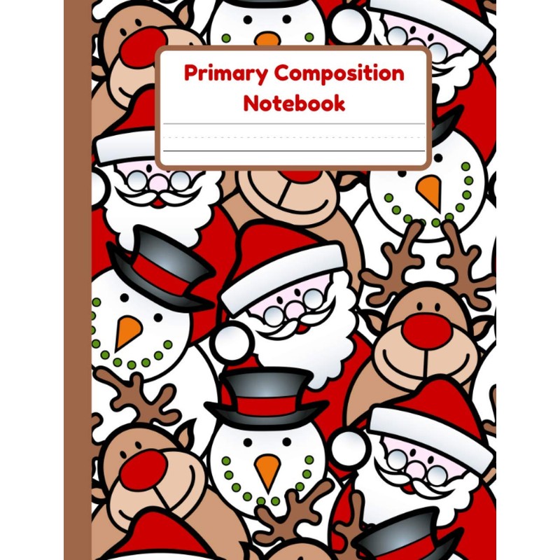 Primary Composition Notebook: Christmas Handwriting Practice Paper With Dotted Mid Line And Drawing Space For Grades K-2 | Christmas Draw And Write Journal For Kids | 120 Pages | 8.5 x 11 In