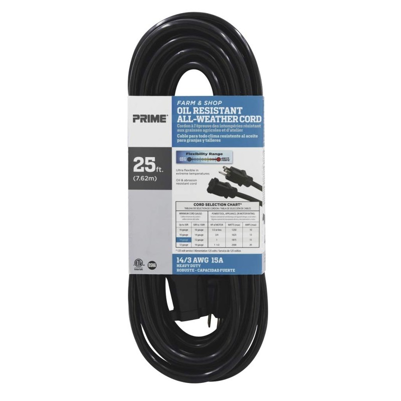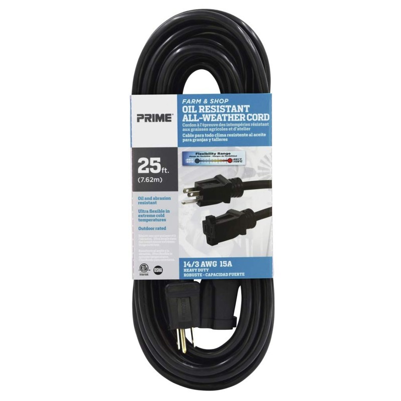 Prime EC532725 25-Foot 14/3 SJTOW Farm and Shop Extension Cord, Black