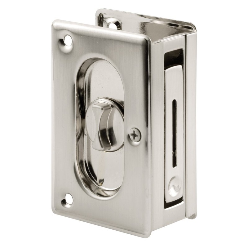PRIME-LINE N 7367 Pocket Door Privacy Lock with Pull - Replace Old or Damaged Pocket Door Locks Quickly and Easily – Satin Nickel, 3-3/4”