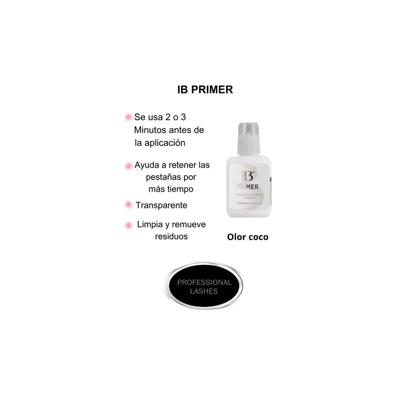 Descripción Primer Originial Coreano IB 15ml Olor a Coco Se aplica antes del pegamento para tener una mejor adhesion de las extensiones de pestañas.