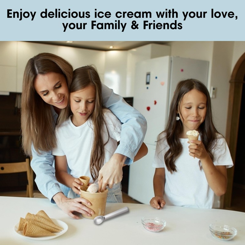 - Premium Anti-Freeze Coating: Constructed with high-quality aluminum renowned for its superior heat conductivity, our spoon boasts a non-stick coating that resists freezing, allowing effortless scooping aided by the natural warmth of your hand.