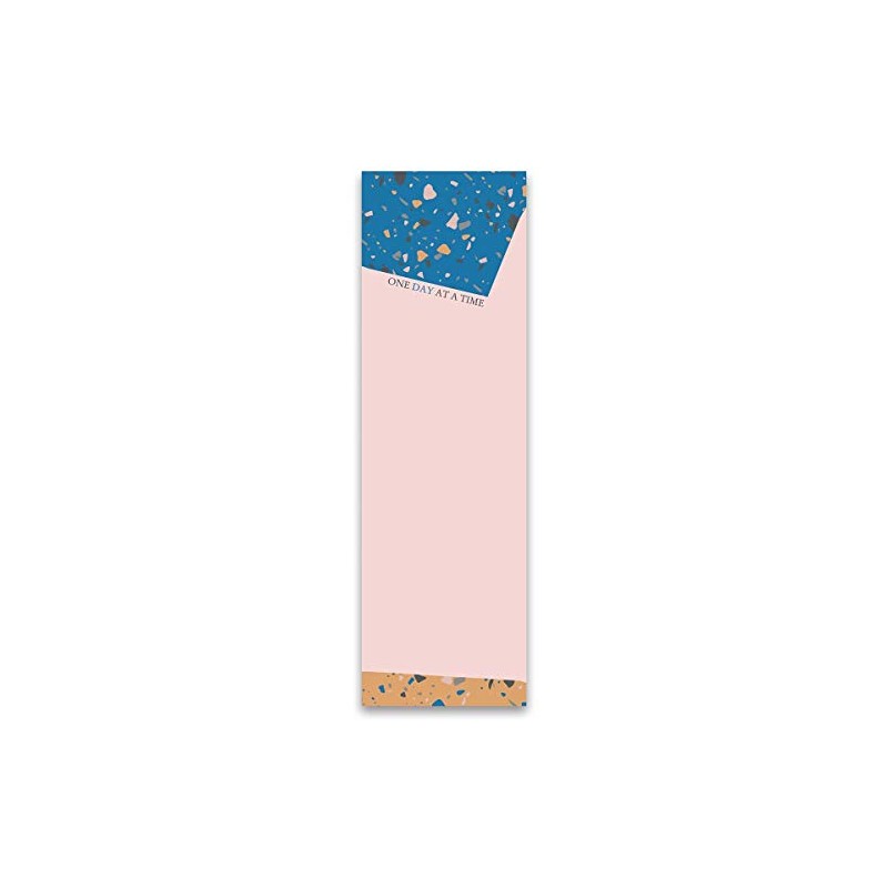 A 1980s Memphis-inspired paper list notepad featuring colorful terrazzo designs with subtle "One Day At A Time" sentiment. Contains 60 pages and strong back magnet.