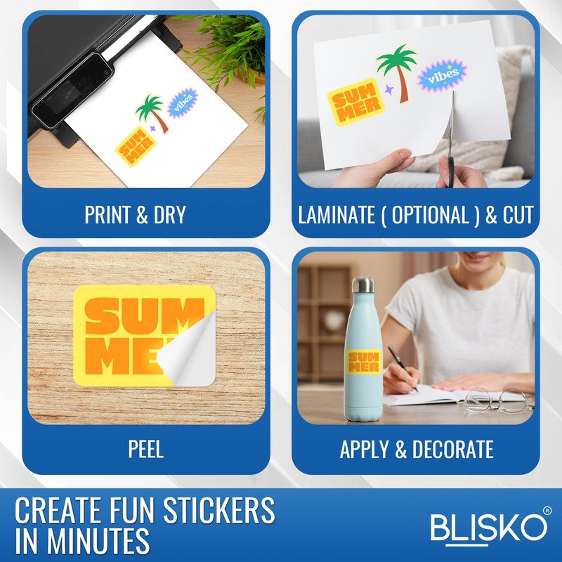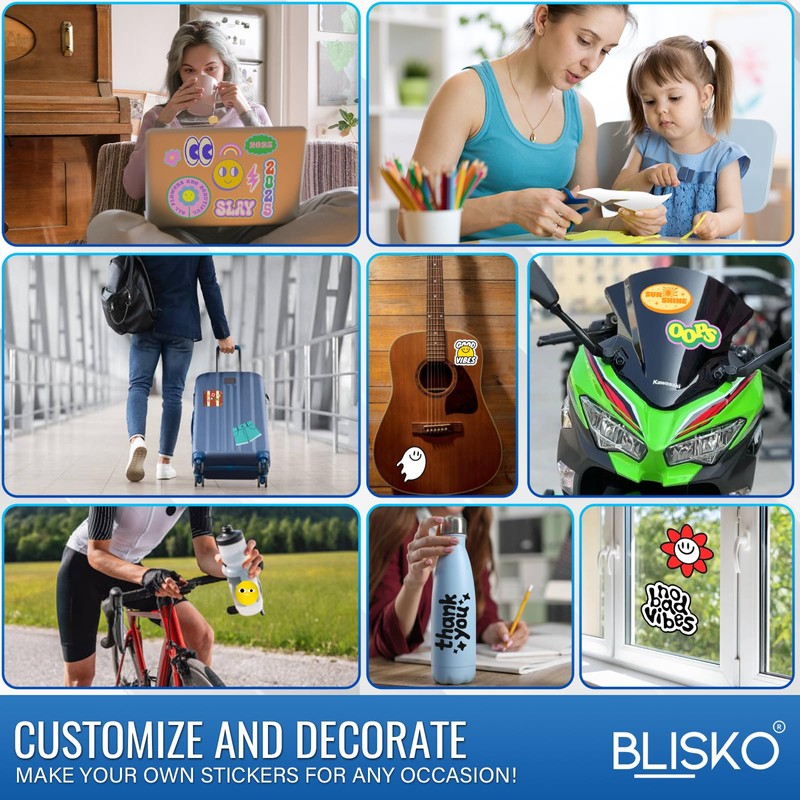 - SUITABLE FOR VARIOUS SURFACES: This sticker printer paper sticks well to hard and smooth surfaces like glass, mirrors, windows, cups, cars, metal, plastic, and wood. This inkjet sticker paper is ideal for custom labels, decals, wall art, home decor, party decorations, scrapbooks, notebooks, laptops, and more. Works for both indoor and outdoor projects.