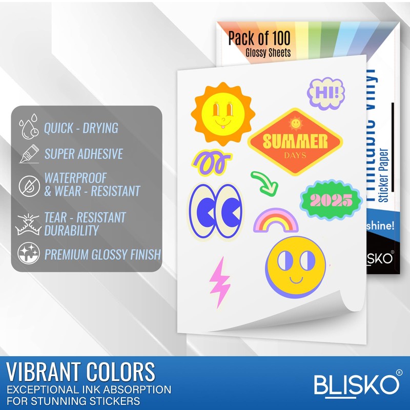 - STRONG ADHESIVE VINYL: The package includes 100 - 8.5" x 11" (216mm x 279mm) printable vinyl sticker sheets, each with a 4 mil thickness to prevent printer jams and ensure smooth feeding. This vinyl stickers sheets offer a smooth, glossy finish for vibrant, long-lasting custom labels, stickers, and decals. Packaged in an OPP envelope, your vinyl sheets arrive neatly organized and ready for use.