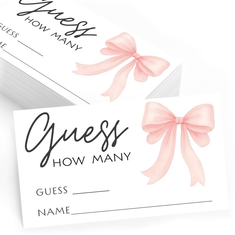 Printed Party Candy Jar Guessing Game, Pink Bow Design, Includes Matching Table Display Sign, Guess How Many, Set of 30