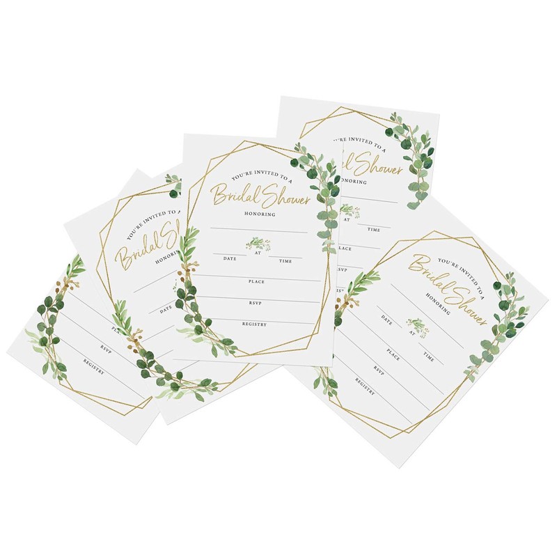 Printed Party Printed Party Bridal Shower Invitations and Envelopes, Greenery...