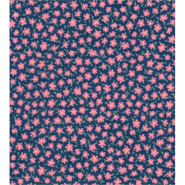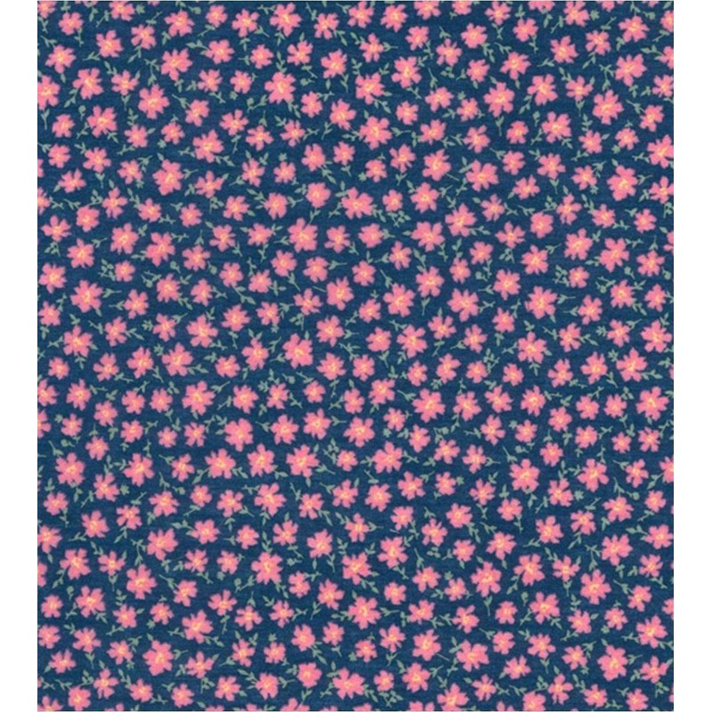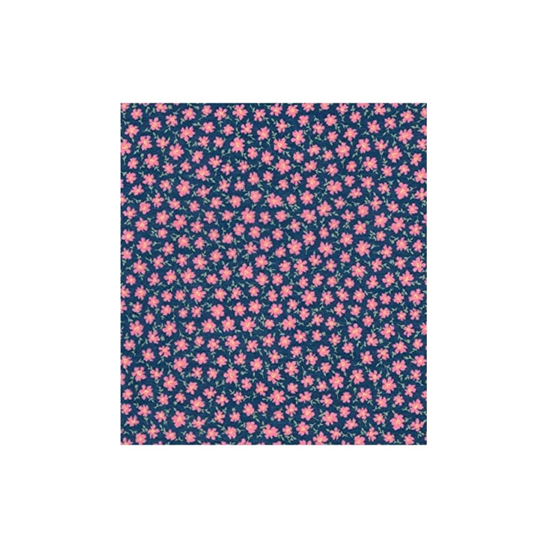 Printed Polycotton Craft Fabric Material - Pink Flowers ON Navy, 1Mtr 110cmx100cm
