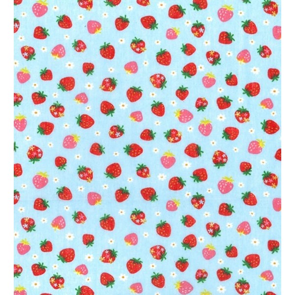 Printed Polycotton Craft Fabric Material - Sky Strawberries, 1Mtr 110cmx100cm