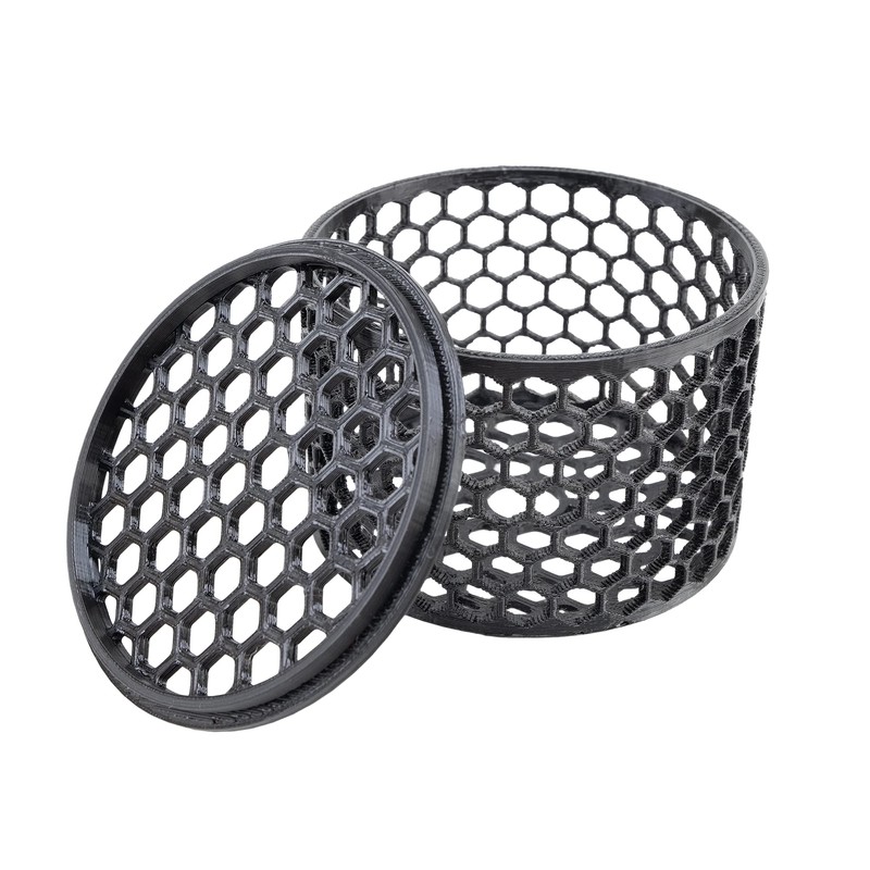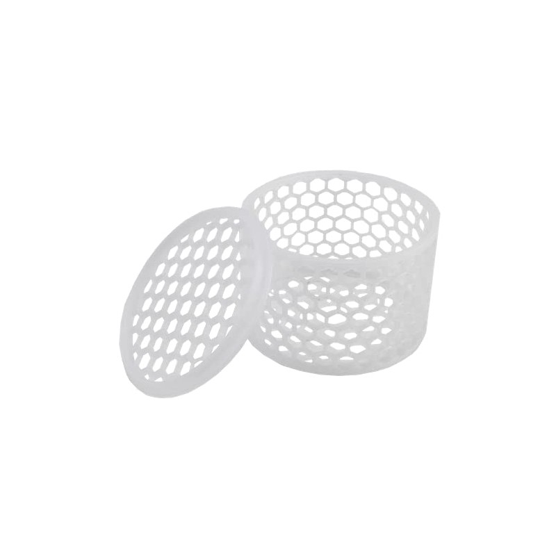 This mushroom cage is perfect for protecting mushrooms in your tank. It features a honeycomb design, with a 0.5" hole on the bottom that allows you to use a frag plug for the mushroom to self attach. Once you close the lid the mushroom will be protected and you will no longer have to worry about it floating away. After some time, you will now have a mushroom that has nicely attached itself to the frag plug.