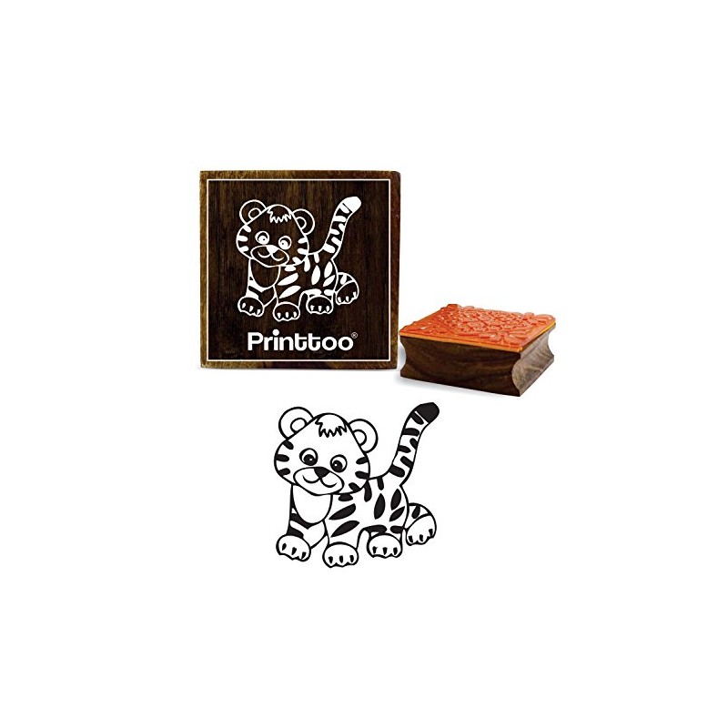 - ✅ A beautiful wooden rubber stamp with square Tiger Design by PRINTTOO